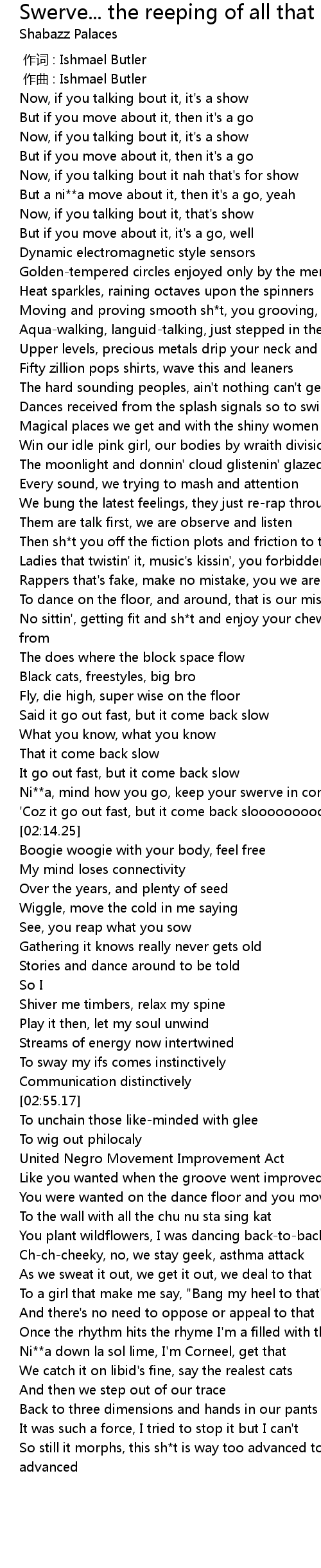 | [02:06.43] | Ni**a, mind how you go, keep your swerve in control |