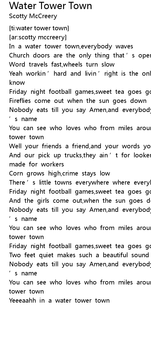 | [00:49.15] | You can see who loves who from miles around,in a water tower town |