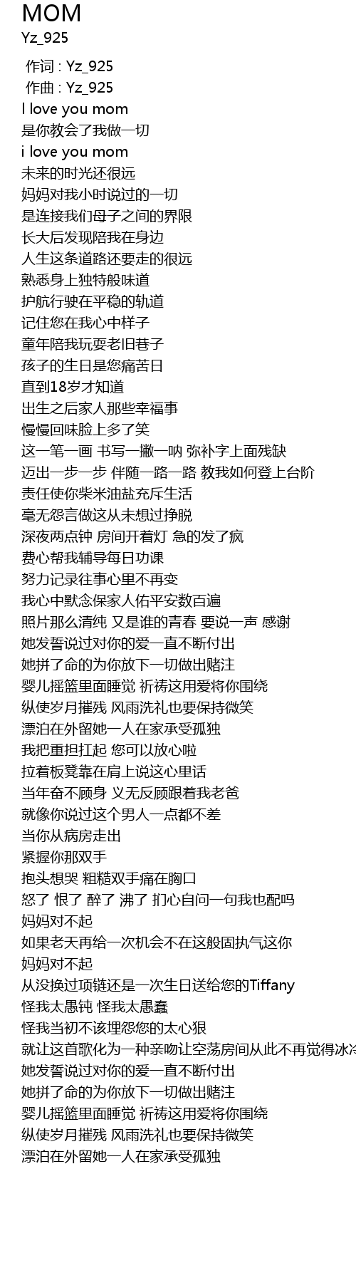| [00:00.000] | 作词 : Yz_925 |