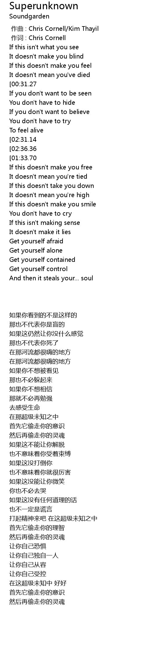 | [00:00.00] | zuo qu : Chris Cornell Kim Thayil |