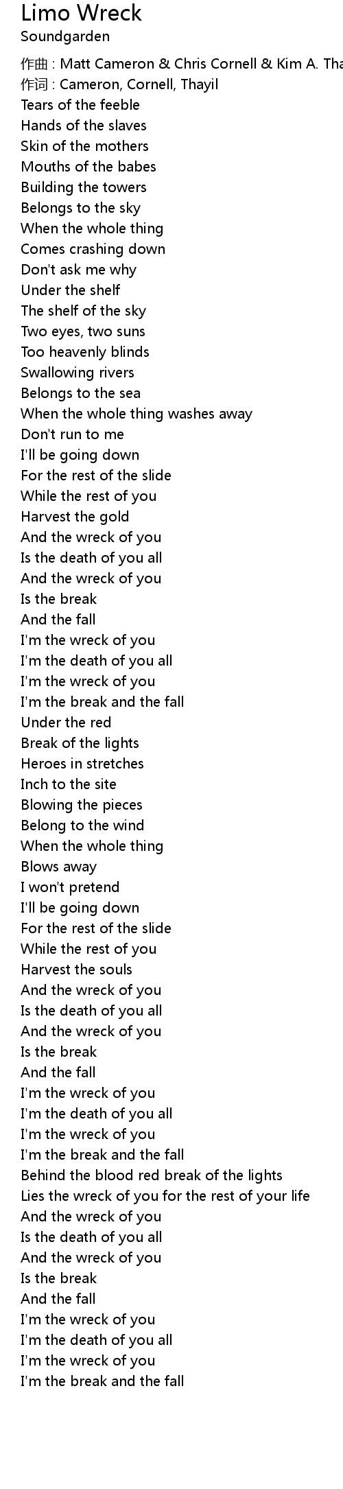 | 作词 : Cameron, Cornell, Thayil | |