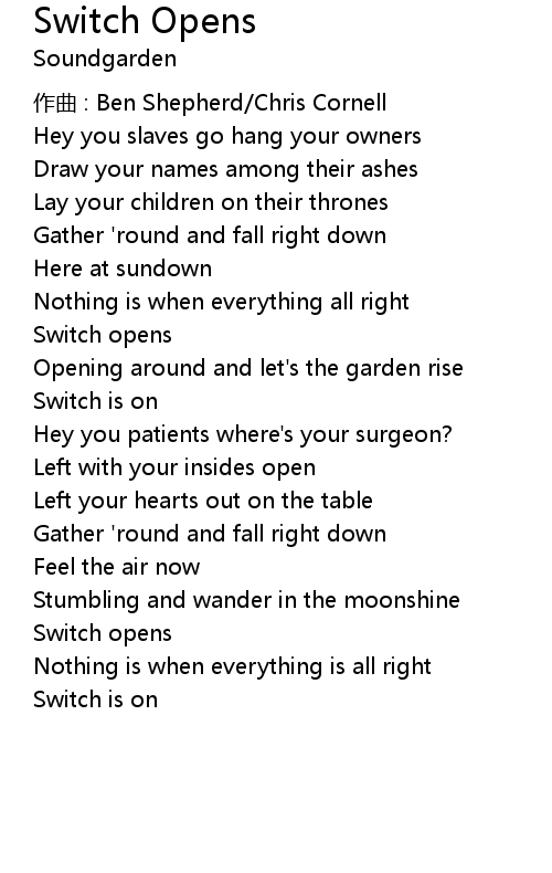 | Song | Switch Opens |