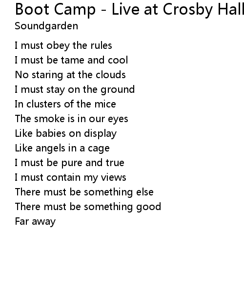 | Song | Boot Camp - Live at Crosby Hall, Del Mar - 11/30/1996 |