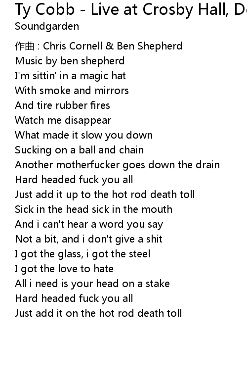 | Song | Ty Cobb - Live at Crosby Hall, Del Mar - 11/30/1996 |