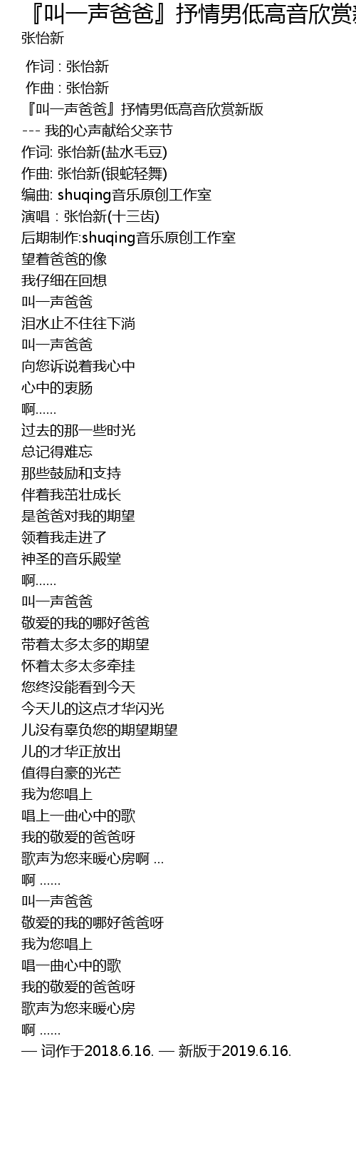| Song | 『叫一声爸爸』抒情男低高音欣赏新版 |