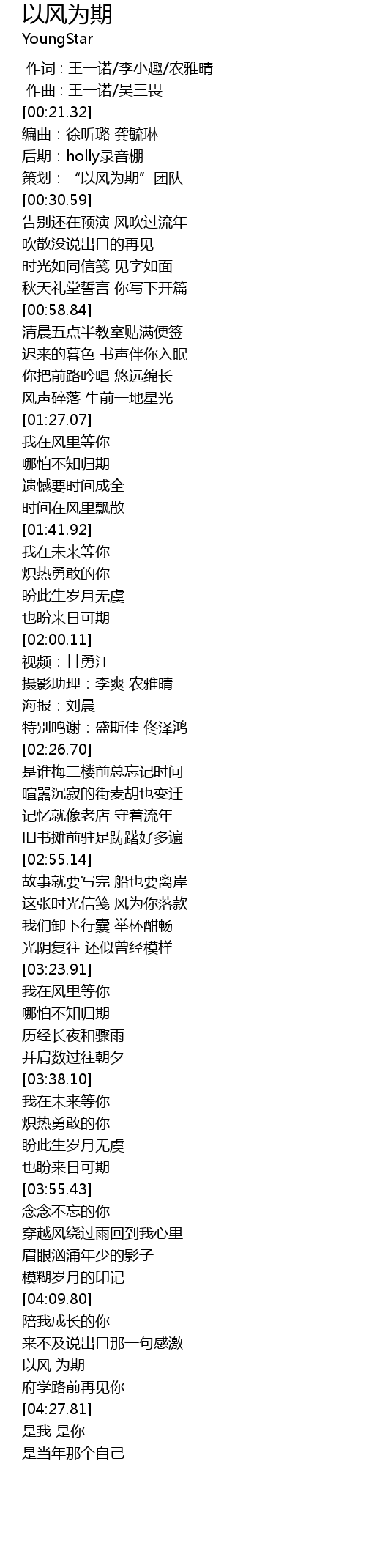 | Album | 以风为期(中国政法大学2019届“肆年”毕业视频主题曲) |