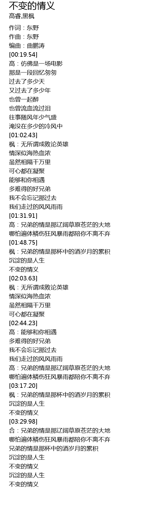 | [01:34.53] | 高:兄弟的情是那辽阔草原苍茫的大地 |