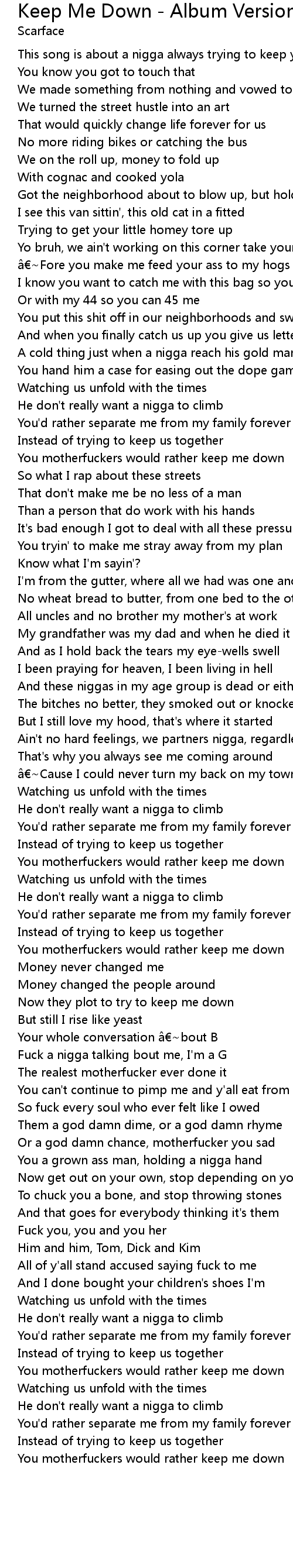 | This song is about a nigga always trying to keep you down | |