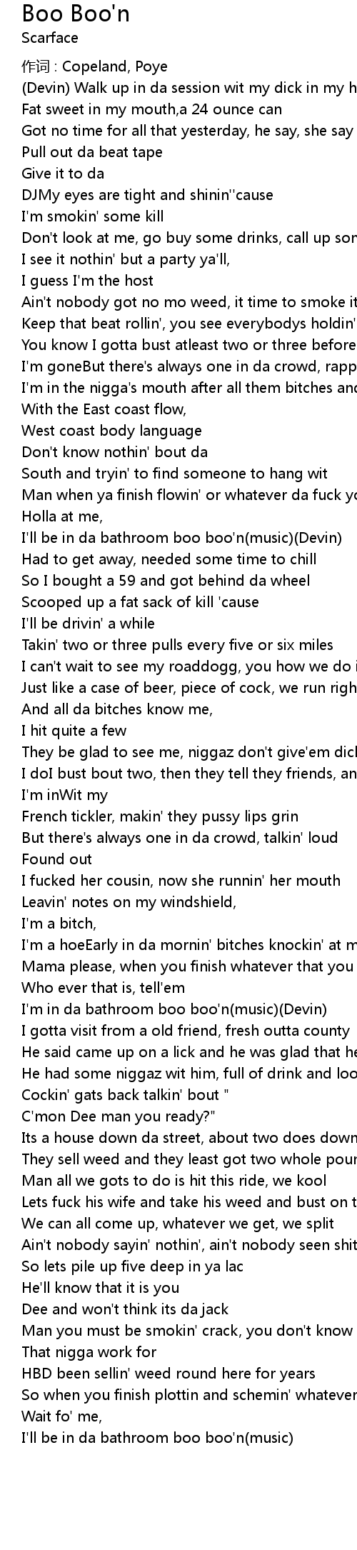 | I' ll be in da bathroom boo boo' n music Devin | |