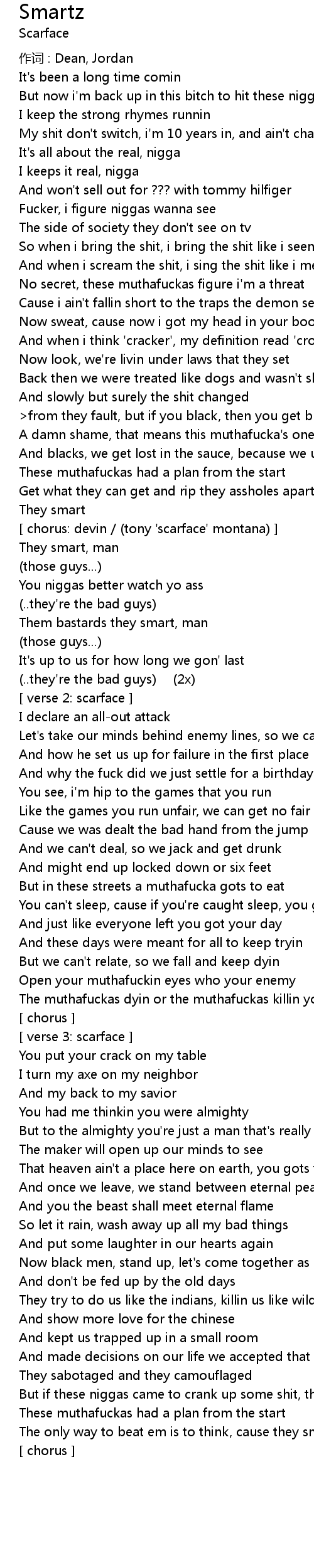 | chorus: devin tony ' scarface' montana | |