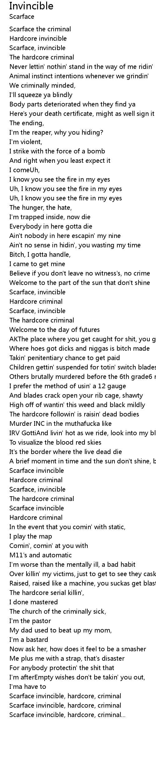 Scarface invincible, hardcore, criminal |