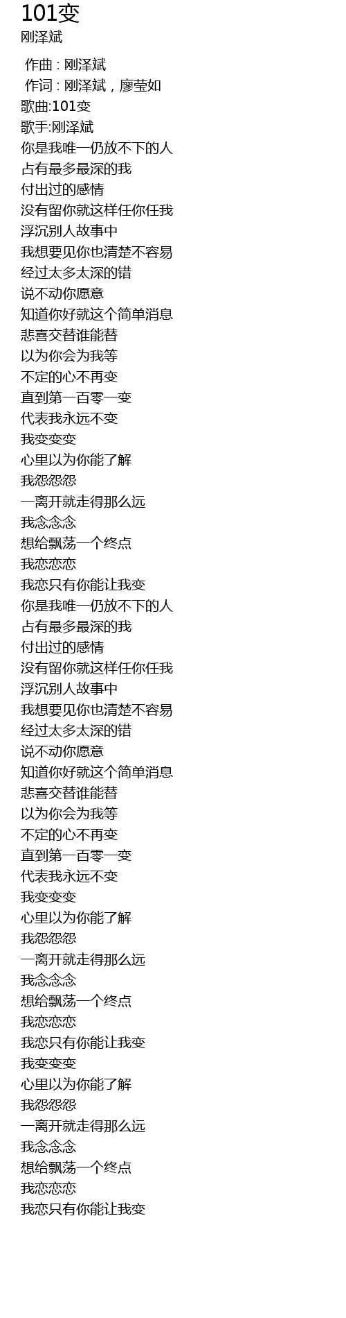 | [00:00.31] | 歌曲:101变 |