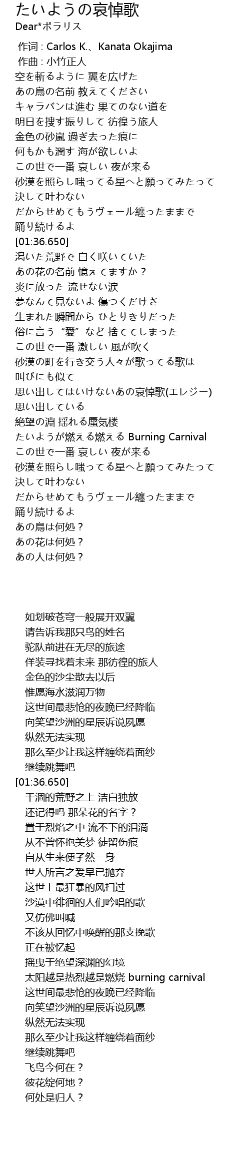 | [02:55.560] | たいようが燃える燃える Burning Carnival |