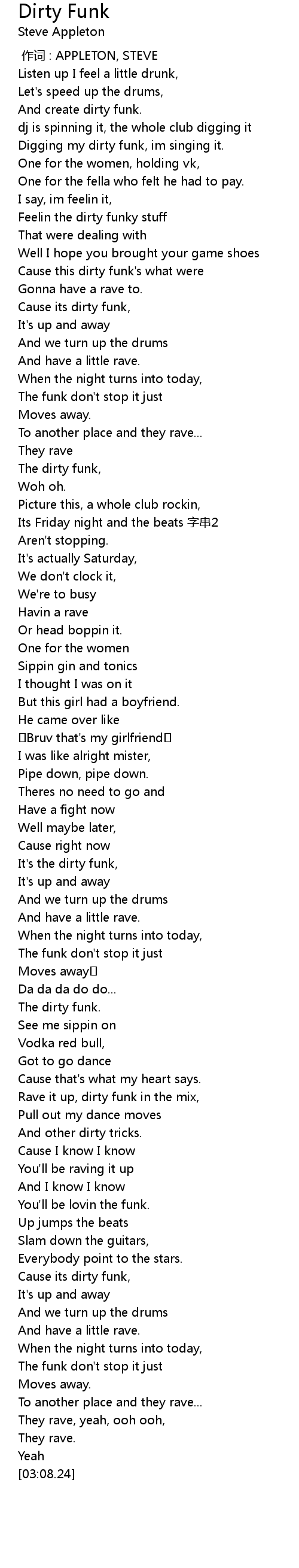 | [02:17.00] | The dirty funk. |