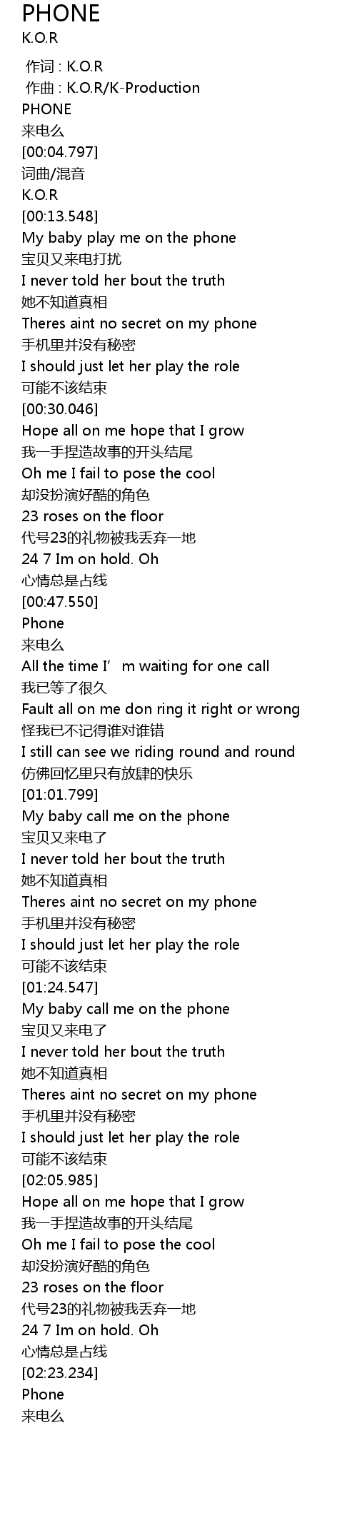 | [00:01.000] | zuo qu : K. O. R KProduction |