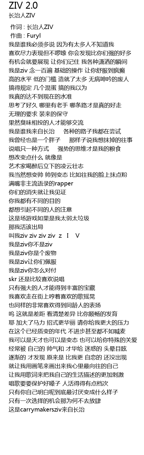 | [00:00.000] | 作词 : 长治人ZIV |