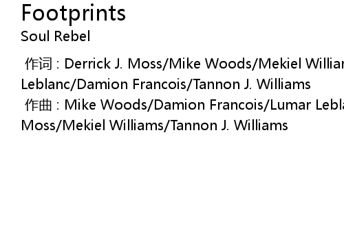 | [00:00.00-1] | zuò cí : Derrick J. Moss Mike Woods Mekiel Williams Lumar Leblanc Damion Francois Tannon J. Williams |