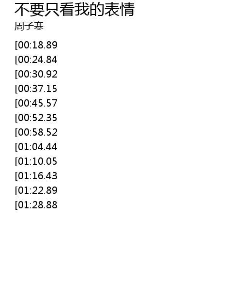 | [02:32.32][00:45.57] | bu yao zhi kan wo de biao qing cai ce wo de xin |