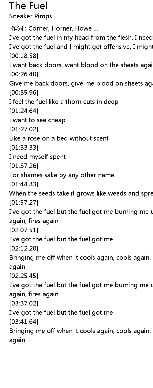 | [03:37.83] | I' ve got the fuel but the fuel got me |