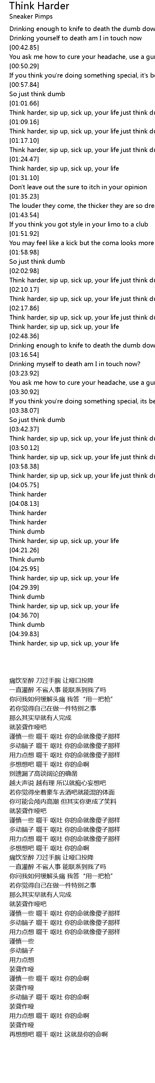 Think harder, sip up, sick up, your life just think dumb |