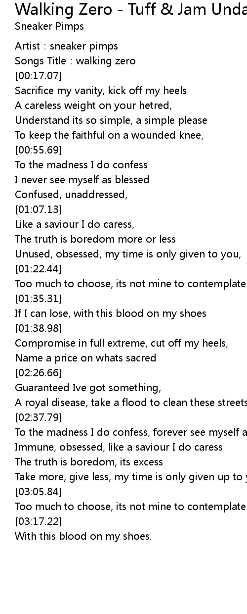 | [01:36.38] | If I can lose, with this blood on my shoes |