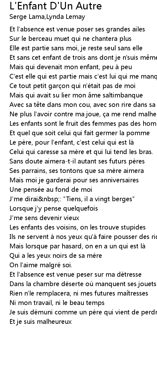 | Et sans cet enfant de trois ans dont je n' suis m me pas le pè re | |