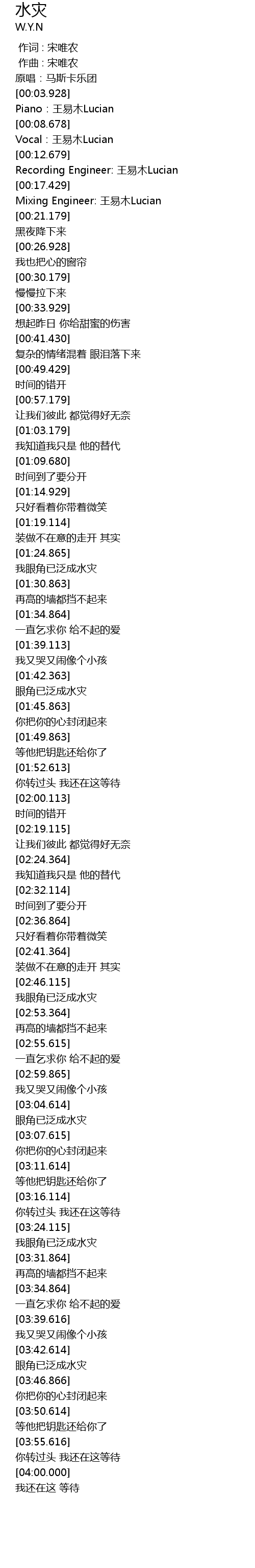 | [00:19.179] | Mixing Engineer: wang yi mu Lucian |