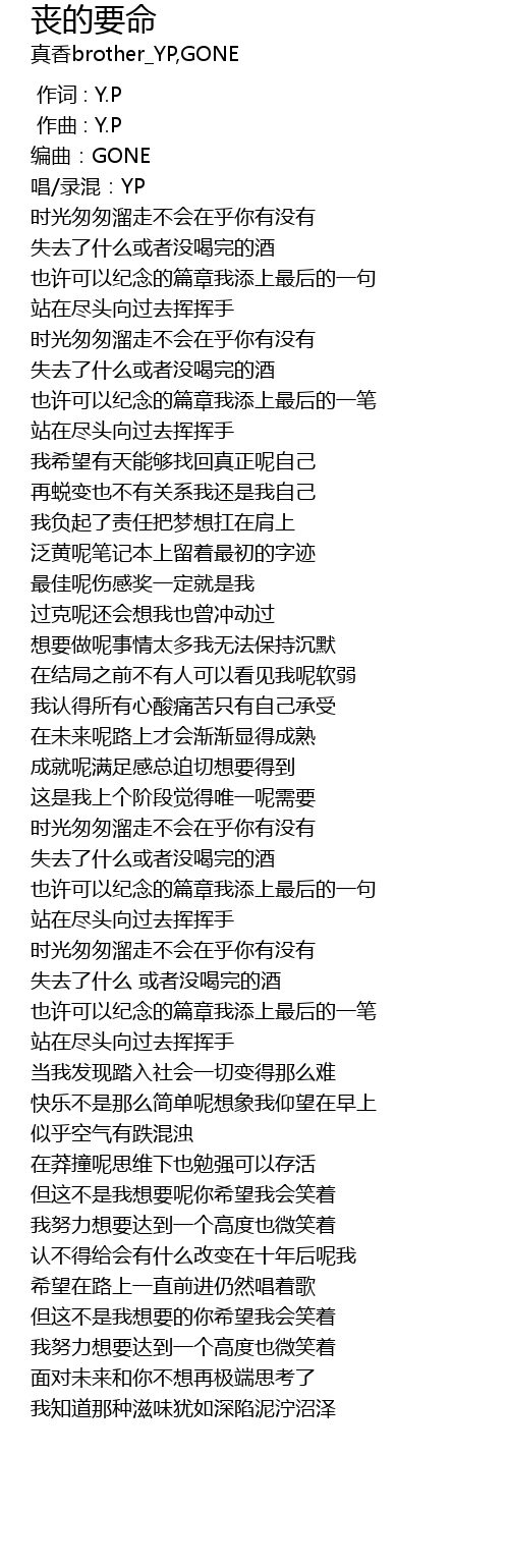 | [00:00.000] | 作词 : Y.P |