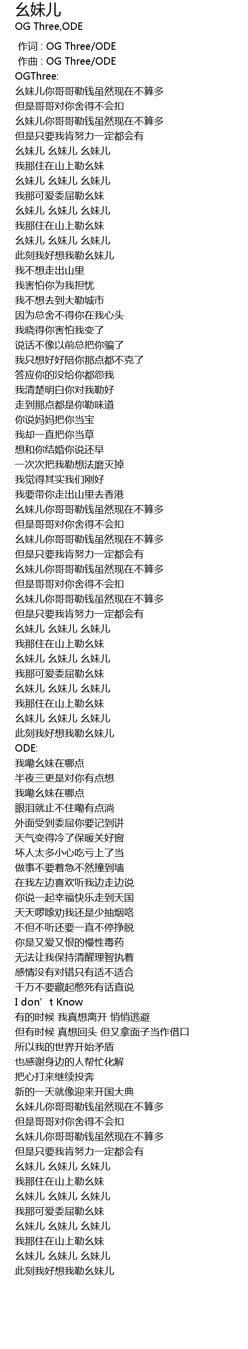 | [01:43.251] | 幺妹儿 幺妹儿 幺妹儿 |