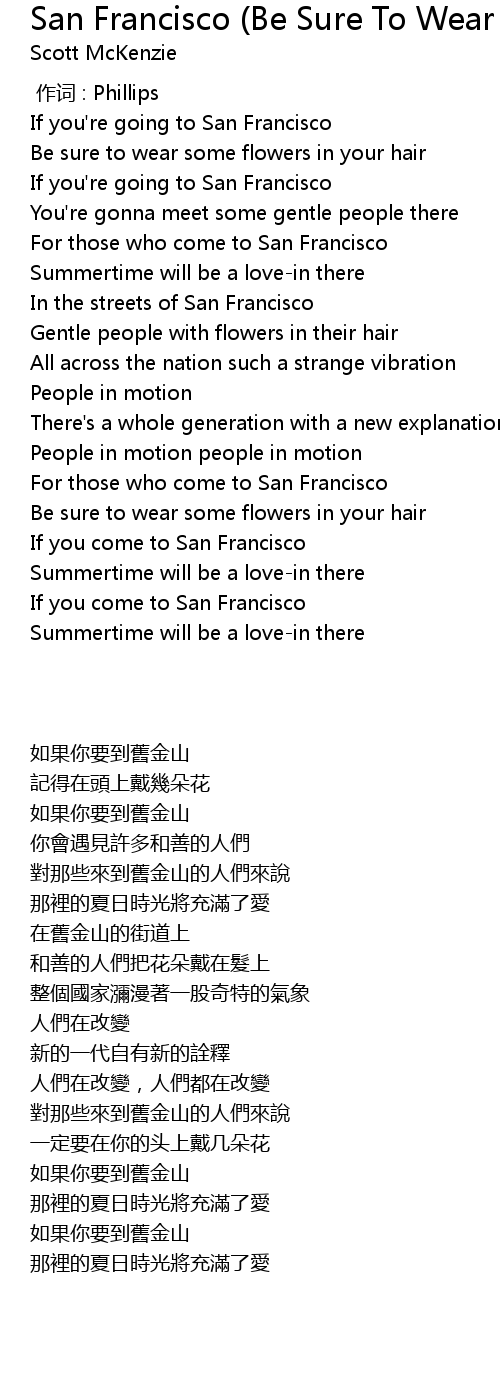 | Song | San Francisco (Be Sure To Wear Flowers In Your Hair) - Single Version |