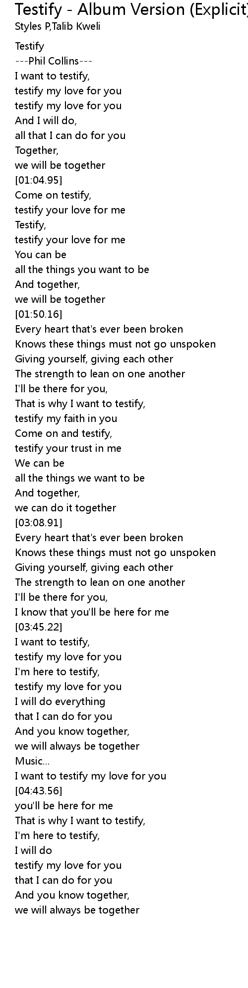 Testify - Album Version (Explicit) Lyrics