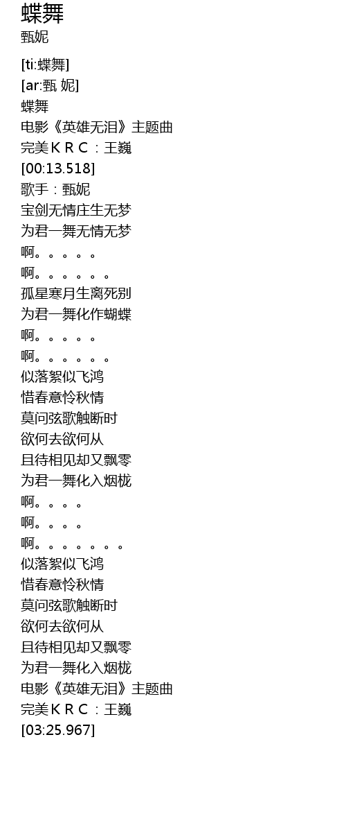 | [01:09.63] | 为君一舞化作蝴蝶 |