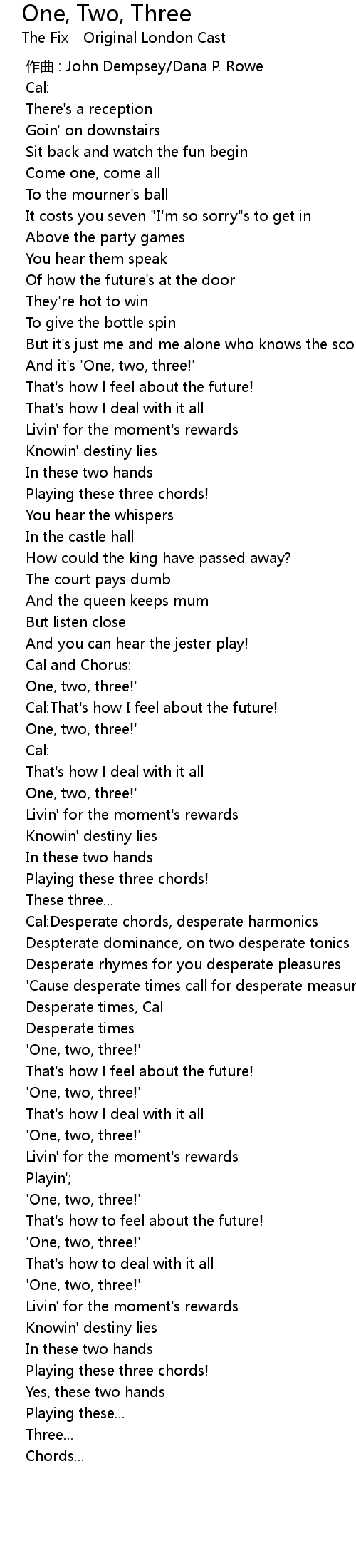 | [00:46.944] | And it's 'One, two, three!' |