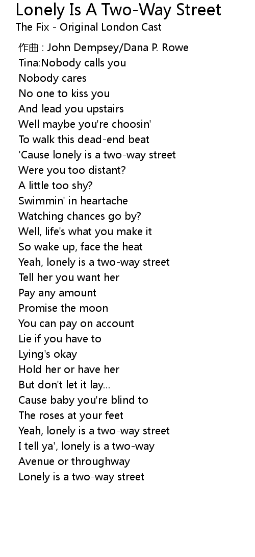 | [00:40.526] | ' Cause lonely is a twoway street |