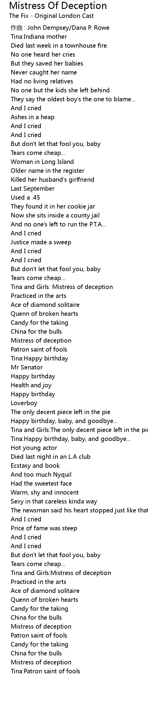 | [01:46.722] | Tina and Girls: Mistress of deception |