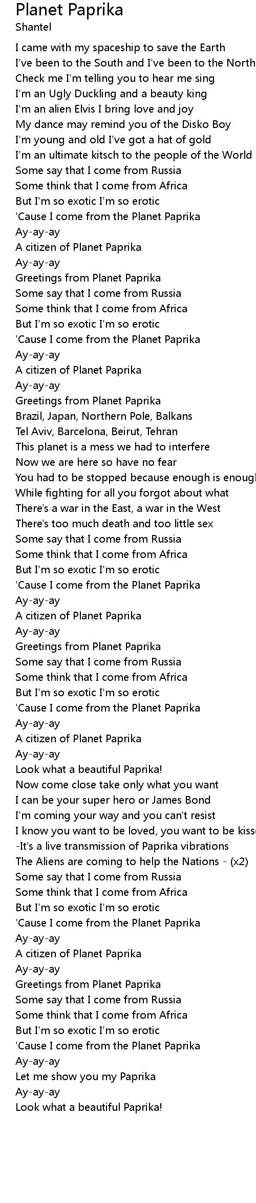 'Cause I come from the Planet Paprika |