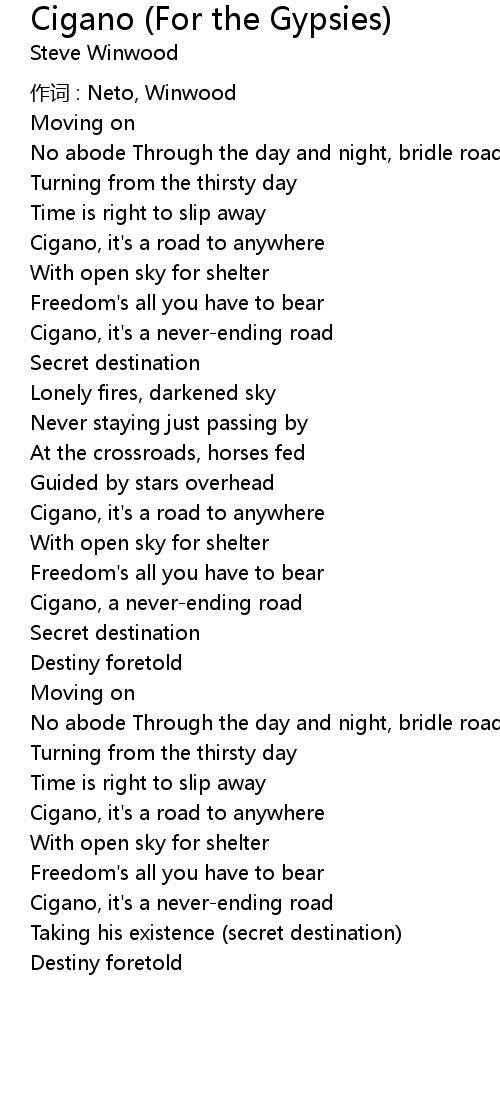 | Cigano, it' s a road to anywhere | |