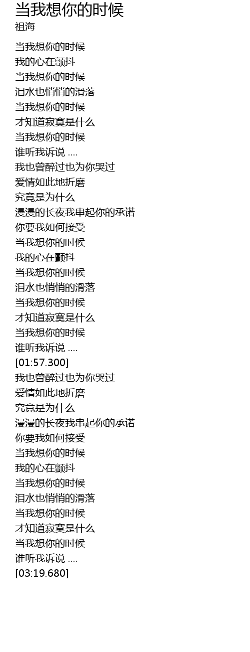 | [01:39.770] | dāng wǒ xiǎng nǐ de shí hòu |