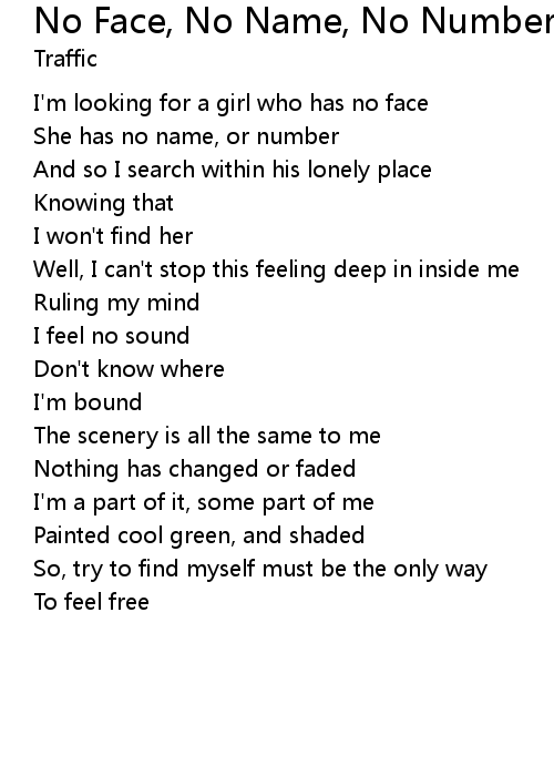 | Song | No Face, No Name, No Number - Stereo Album Version |