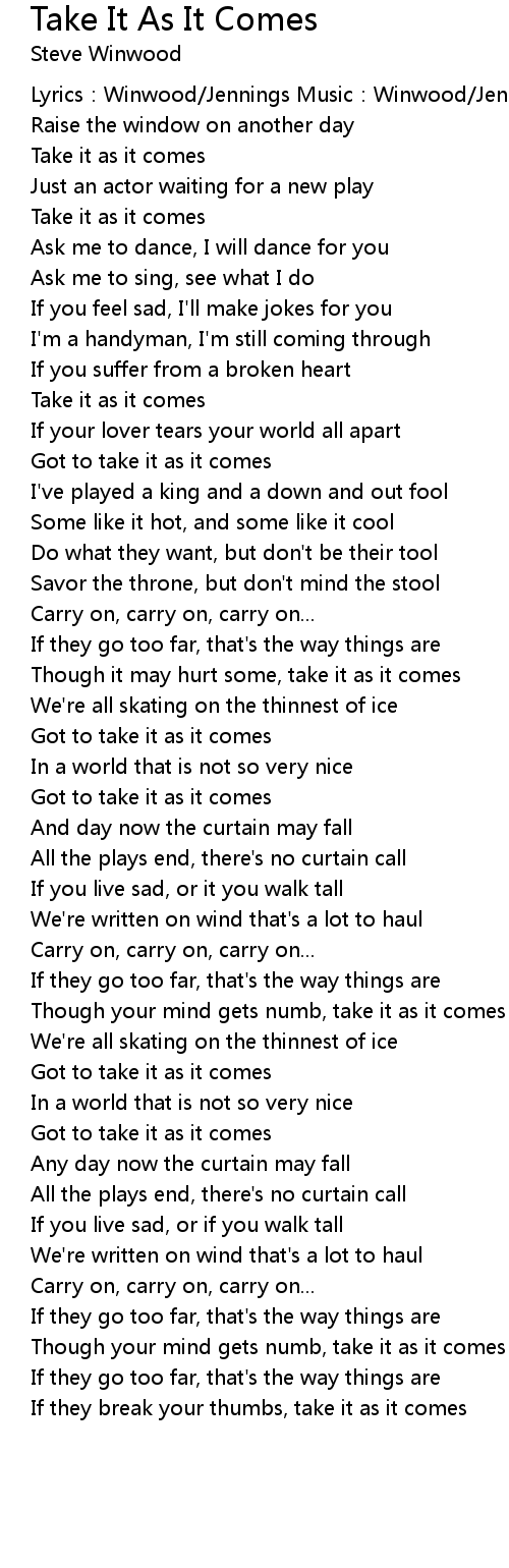 | Got to take it as it comes | |