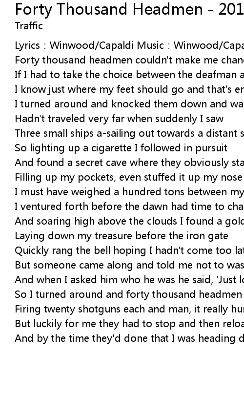| Song | Forty Thousand Headmen - 2010 Remaster |