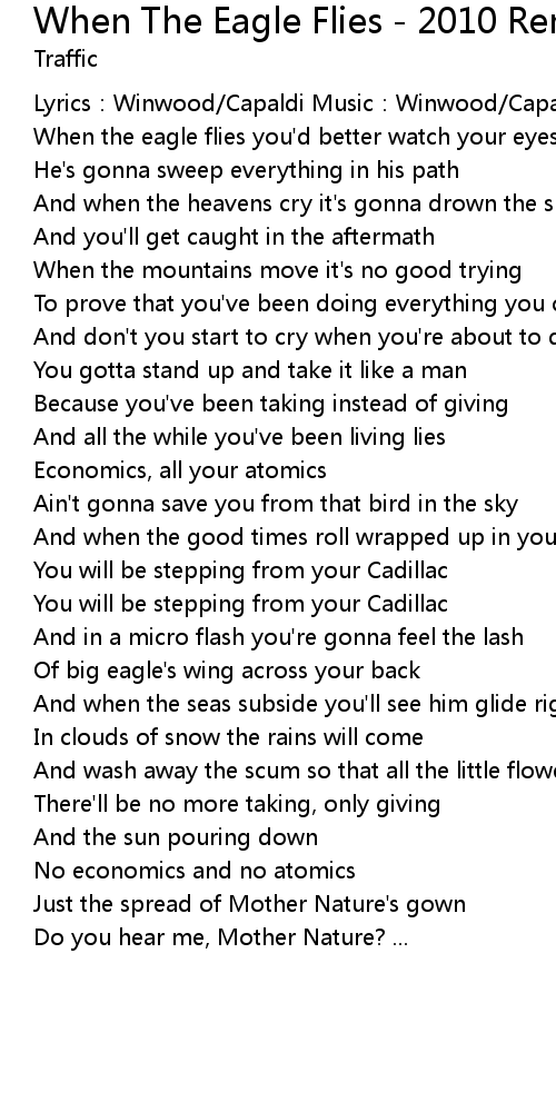 | When the eagle flies you'd better watch your eyes | |