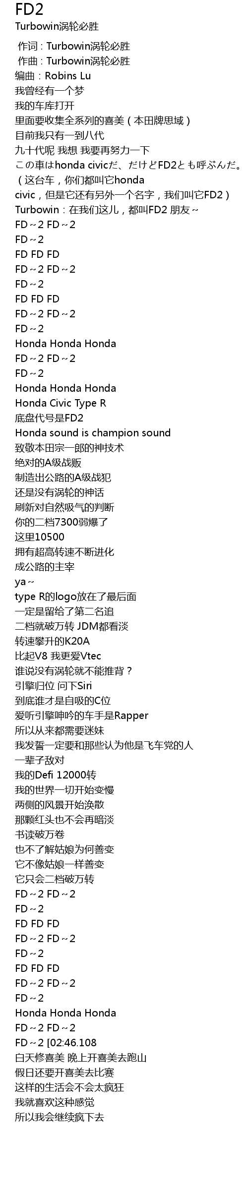| [00:22.387] | Turbowin:在我们这儿,都叫FD2 朋友~ |