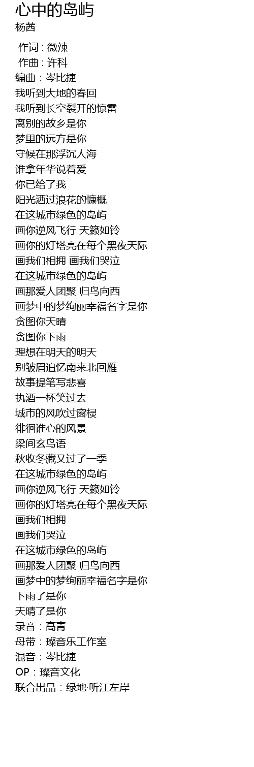| [02:50.19] | 在这城市绿色的岛屿 |