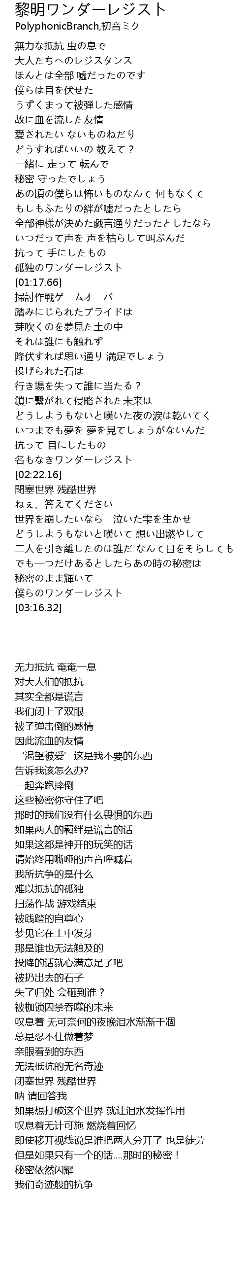 | [02:16.72] | 名もなきワンダーレジスト |