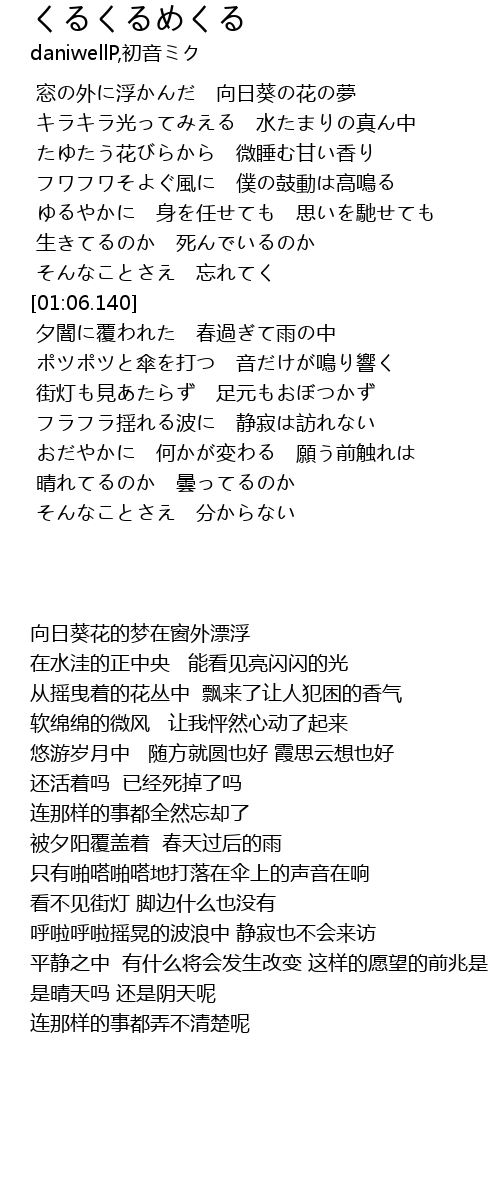 | [00:18.508] | 窓の外に浮かんだ 向日葵の花の夢 |