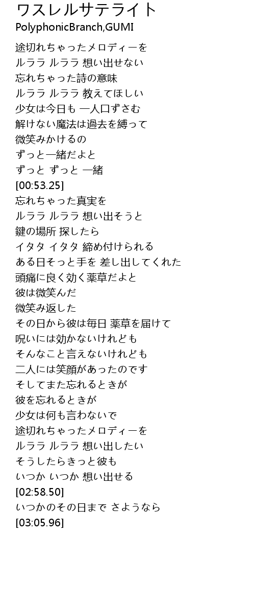 | [00:20.37] | 忘れちゃった詩の意味 |