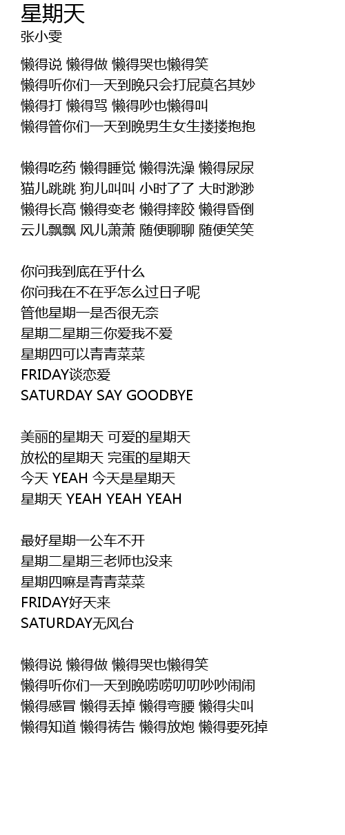 | jīn tiān YEAH jīn tiān shì xīng qī tiān | |