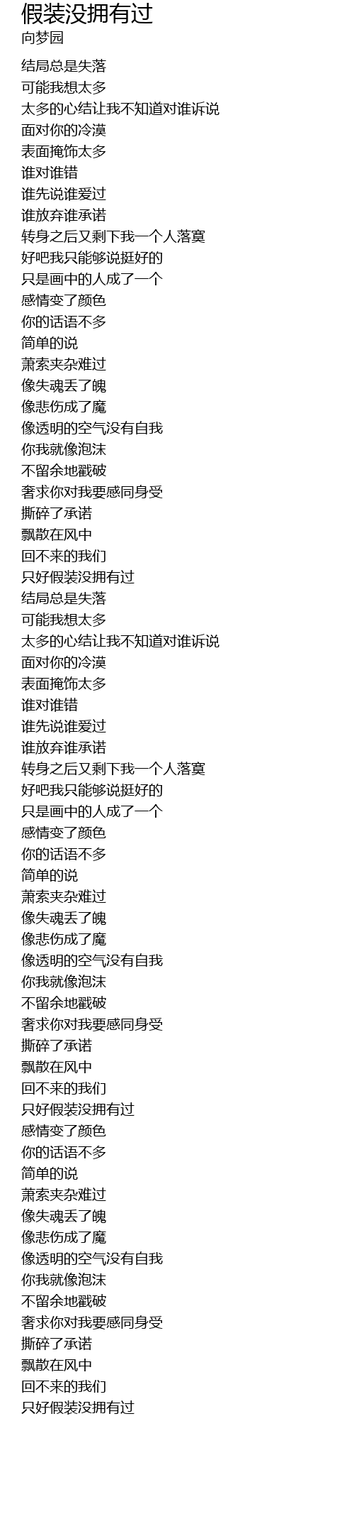 | [01:42.96] | zhǐ hǎo jiǎ zhuāng méi yōng yǒu guò |