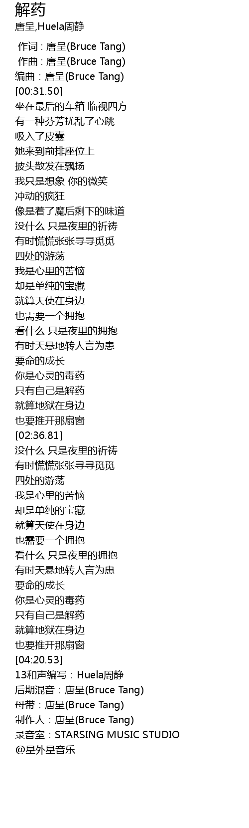 | [04:26.50] | 后期混音:唐呈(Bruce Tang) |